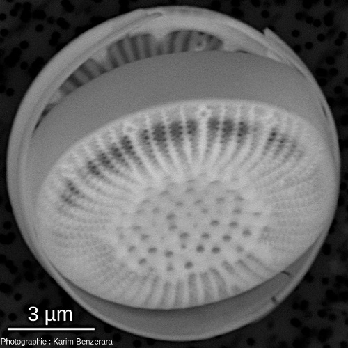 - Diatomées. Du Toarcien (dernier étage du Jurassique inférieur) à l’actuel. Algues unicellulaires photosynthétiques d’environnements variés marins (benthiques ou pélagiques) ou d’eau douce (lacustre), d’eaux très froides à très chaudes (la plupart sont d’eaux froides). Squelette externe siliceux appelé frustule formé de deux thèques s’emboitant. Producteurs primaires majeurs des océans. Faible extinction à la limite Crétacé-Paléogène. Intérêt stratigraphique et bons indicateurs de paléoenvironnement et de paléotempérature. Constituant parfois des niveaux de diatomite.