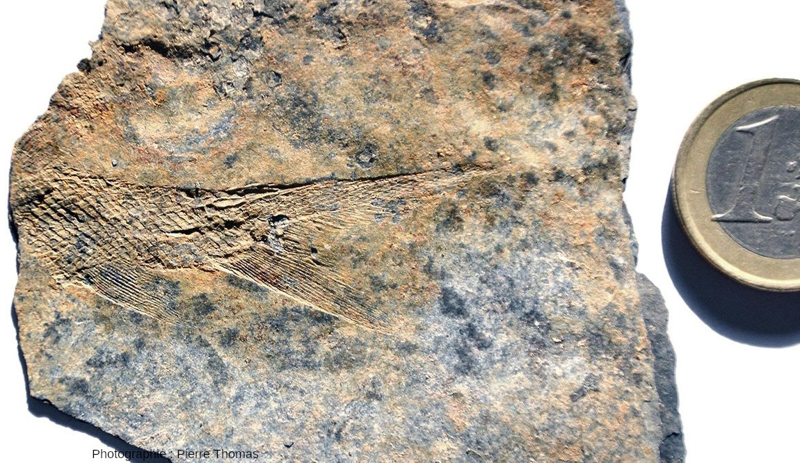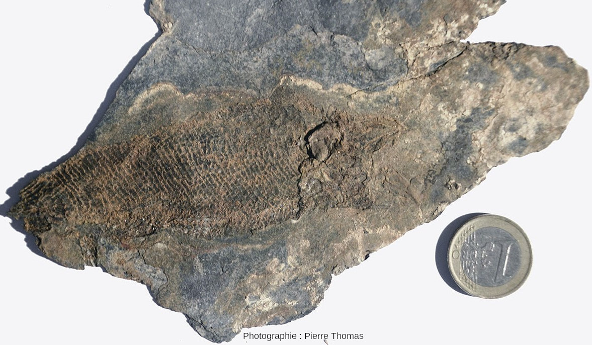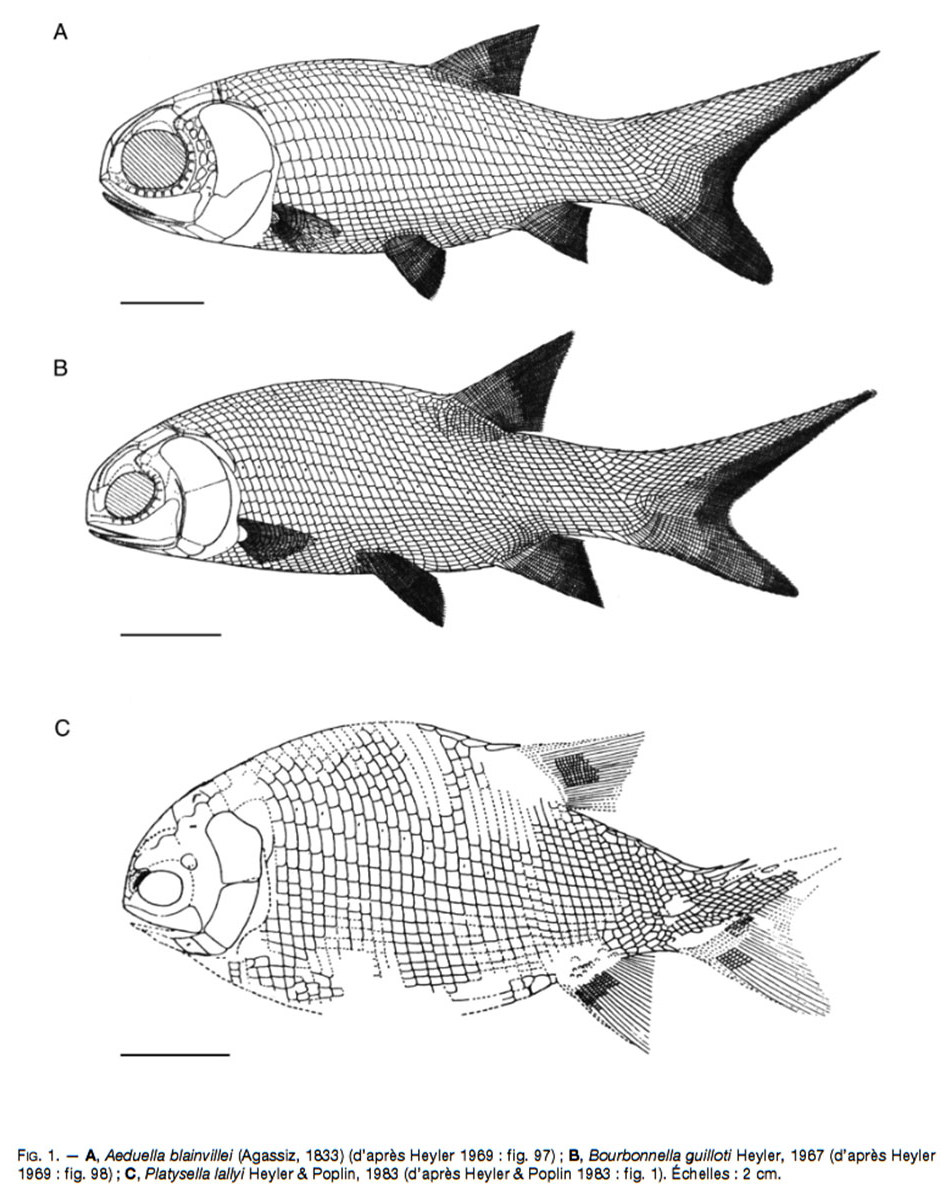 ![]() Source - © 2025 — Pierre Thomas Il s'agit probablement d'un exemplaire de Bourbonnella guilloti. Les écailles et les rayons des nageoires sont parfaitement visibles. |