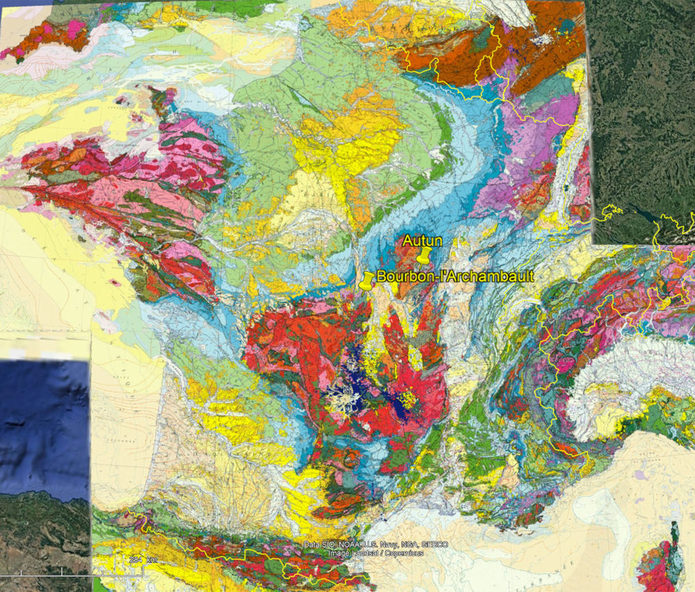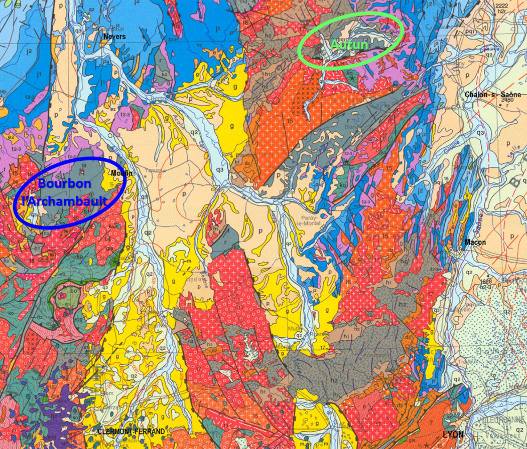 ![]() Source - © 2006 — D’après BRGM, modifié Ces bassins, d'où proviennent tous les échantillons présentés cette semaine, sont des bassins d'extension tardi-hercynienne. Localisation par fichier kmz Bourbon-l'Archambault (Allier) et de d'Autun (Saône-et-Loire). |
