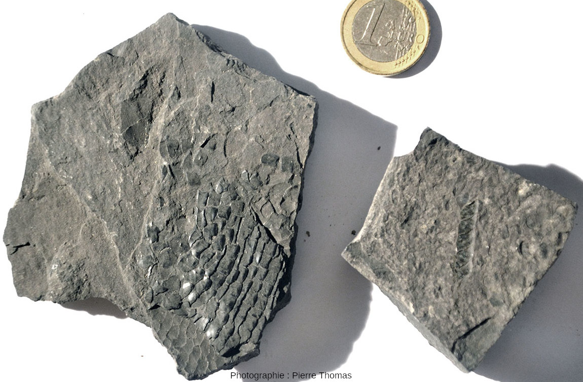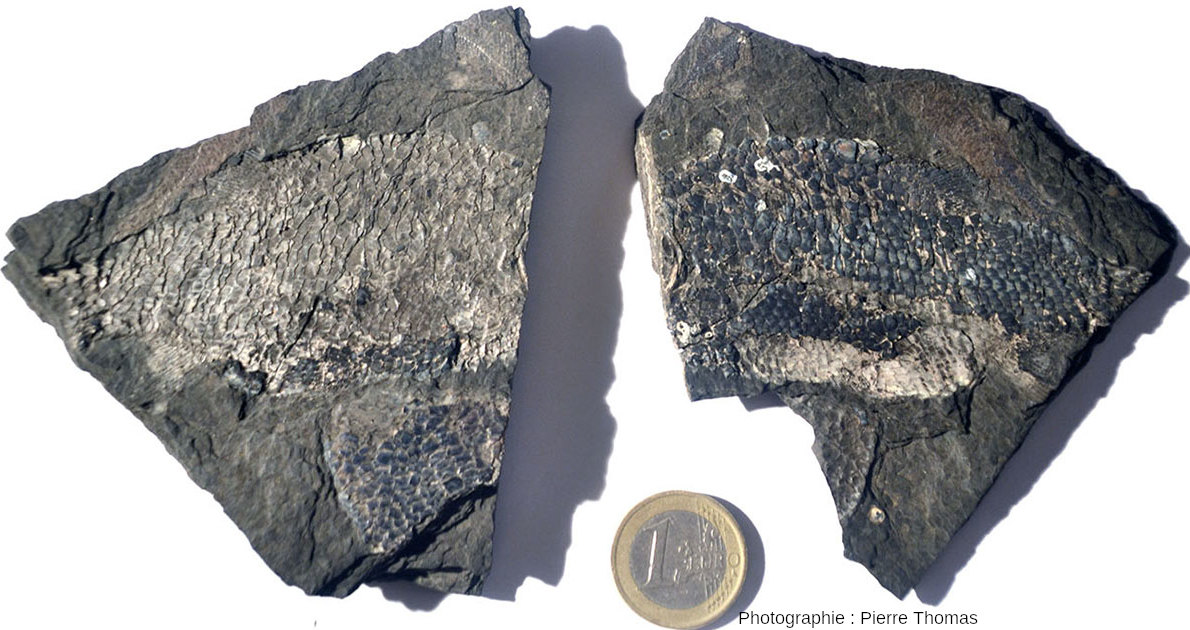 En 1972, jeune étudiant de 20 ans (en “L2” à Clermont-Ferrand pour parler avec la terminologie actuelle), j'ai passé des vacances dans la région d'Autun (Saône-et-Loire) à rechercher des minéraux (voir par exemple, Pyrite et fluorine) et des fossiles du Permien inférieur (anciennement Autunien, et maintenant Assélien, −299 à −293 Ma). Nous avons vu des bois silicifiés il y a 4 semaines (cf. Les Psaronius sp. et autres bois silicifiés du Permien inférieur de la région d'Autun (Saône-et-Loire)) et nous verrons cette semaine d'autres fossiles du même secteur d'Autun, à savoir des fossiles de poissons (figures 10 à 14) trouvés dans le gisement de Muse ainsi que des végétaux provenant du terril de Margenne (figure 24 à 26).