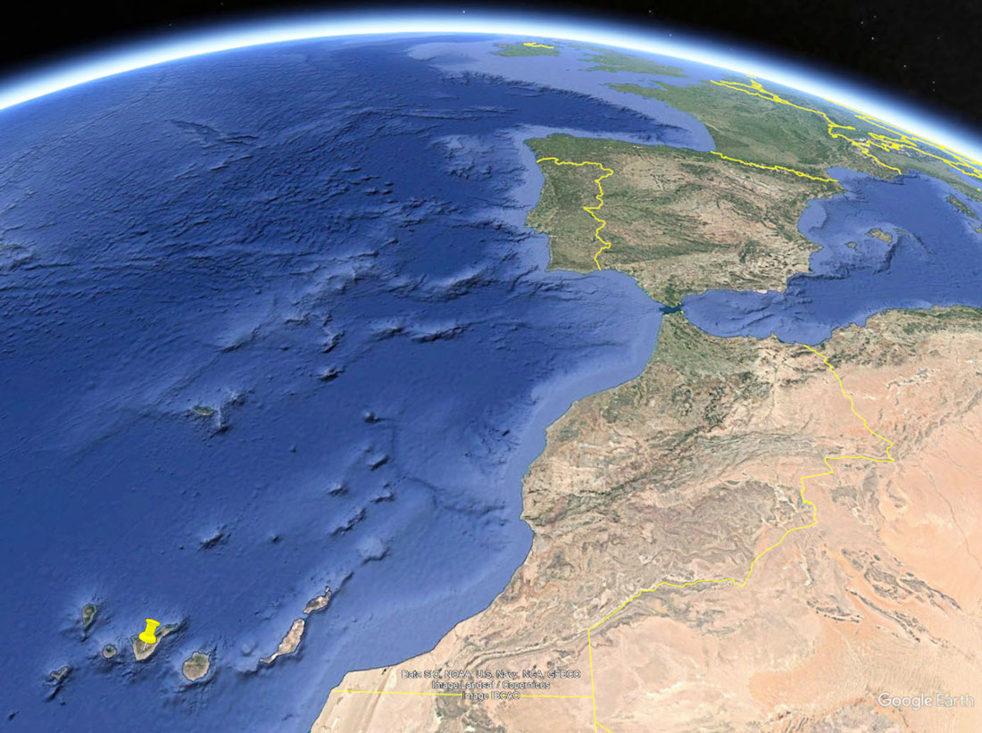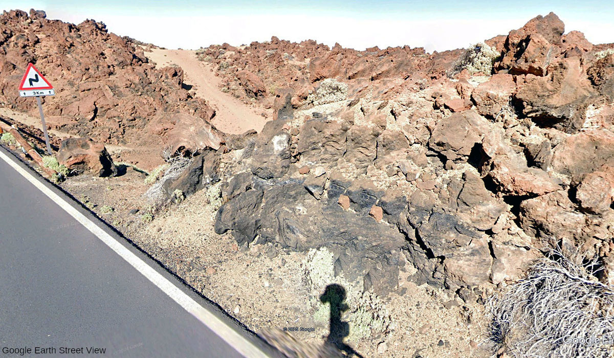 En octobre 2004, j'ai participé à un “voyage astronomique” (avion + bus) organisé par l'Association Française d'Astronomie (AFA) aux iles Canaries, voyage dont le but principal était la visite des nombreux observatoires installés sur ces iles, principalement sur les iles de Tenerife et de La Palma. Ces observatoires y ont été installés du fait des excellentes conditions atmosphériques qui y règnent (faible nébulosité au-dessus de 2000 m, faible turbulence de l'atmosphère…), conditions qui rappellent les conditions régnant à Hawaii où sont d'ailleurs installés d'autres grands observatoires astronomiques. Mais le tourisme non astronomique n'était pas absent de ce voyage. On a traversé et on s'est arrêté assez souvent (bien que pas assez à mon goût) admirer de somptueux paysages volcaniques, même s'il n'y a quasiment pas eu d'arrêts strictement “géologiques” permettant soit des échantillonnages soit d'étudier / photographier des structures particulières. L'article de cette semaine, comme cinq autres à venir, correspond à un aspect de cette visite “touristico-géologique” des iles de Tenerife et de la Palma, avec des images provenant du scan de vieilles diapositives argentiques, moins nombreuses que ce que j'aurais fait quelques années plus tard quand j'ai acquis mon premier appareil numérique. J'ai complété ces scans de diapos personnelles prises sur le terrain ou par la fenêtre du bus avec ce qu'on trouve en 2025 sur Google Earth Street View, où le véhicule scannant les bords de routes ainsi que le public y déposant ses photographies ont fait de la géologie, souvent sans le savoir. Après ce premier article consacré à la caldeira Las Canadas, deux autres articles décriront d'autres aspects de Tenerife, et trois autres seront consacrés à l'ile de la Palma.