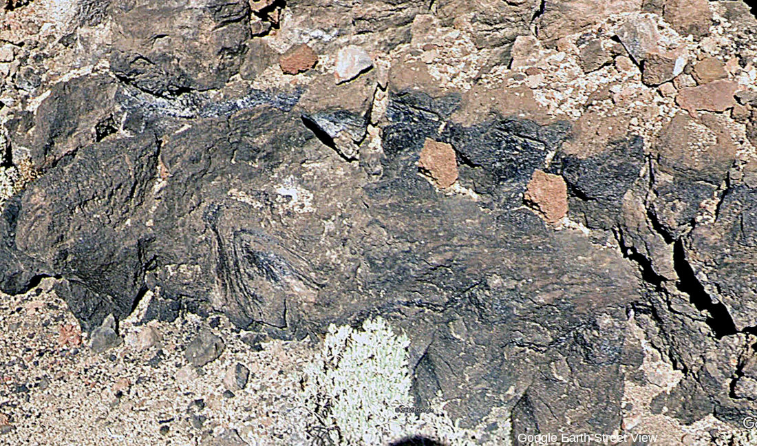 ![]() Source - © 2025 — Google Earth Street View On exploitait des carrières de ponce en ces lieux dans la première moitié du XXe siècle). La figure suivante ( figure 10) correspond à un zoom sur la coulée située au centre de cette figure. |