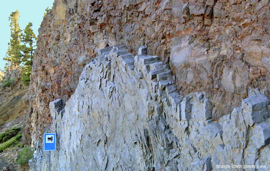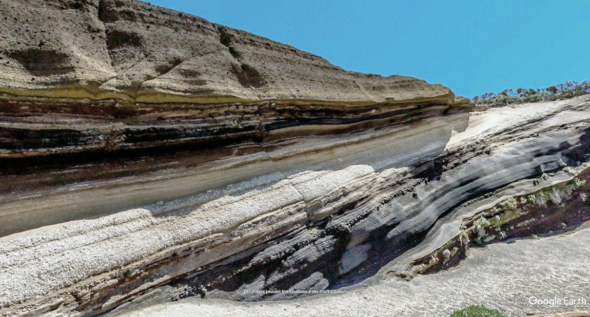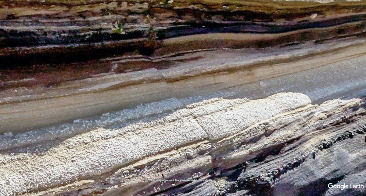 Les images Google Earth Street View permettent de voir des détails de cet affleurement, dont une petite faille qui m'avait échappé en 2004.
