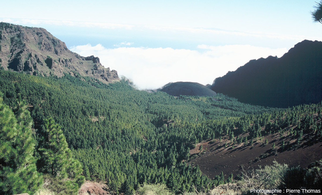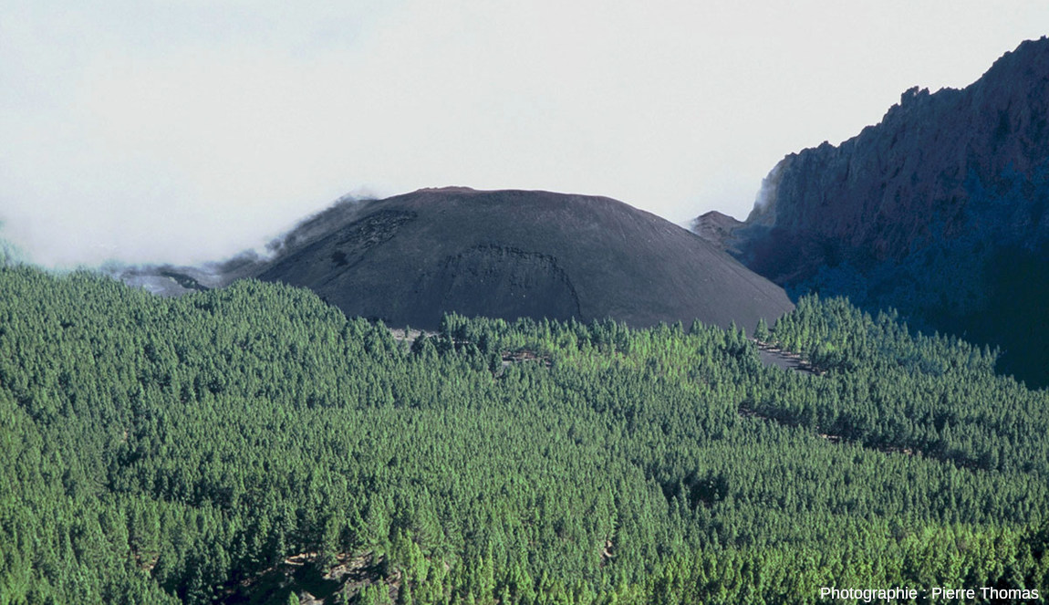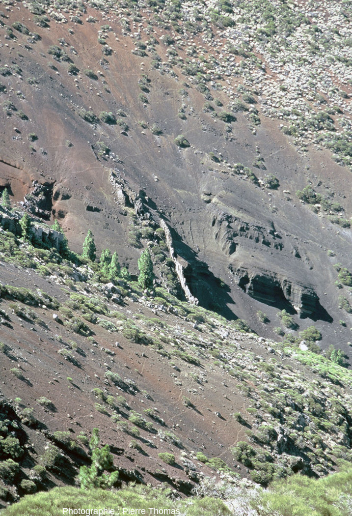 ![]() Source - © 2004 — Pierre Thomas Il s'agit d'un cône de scories basaltiques dont l'éruption date de 1909, la dernière éruption de Tenerife. La végétation n'a pas colonisé ce cône pendant les 95 ans qui ont suivi. |