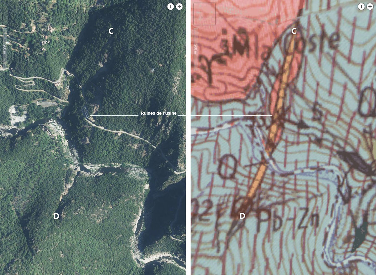![]() Source - © 2025 — Pierre Thomas Photographie prise depuis le point 4 de la photo 2. Localisation par fichier kmz de l'ancienne mine de plomb-zinc de Sainte-Marguerite-Lafigère (Lozère). |