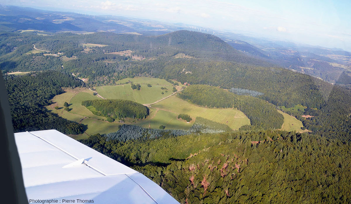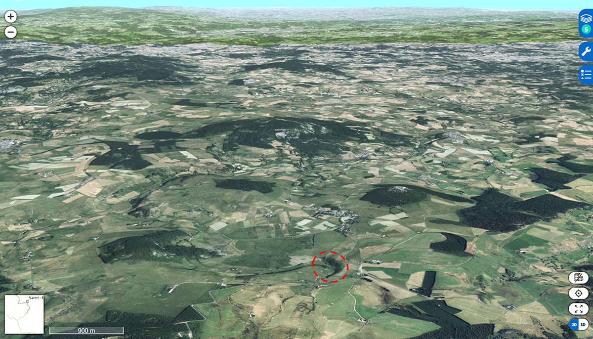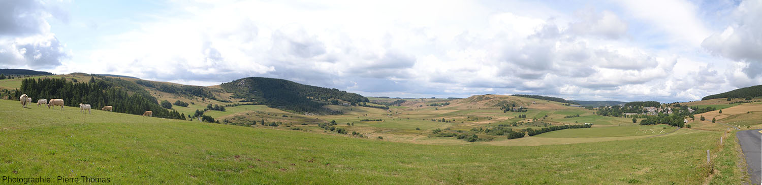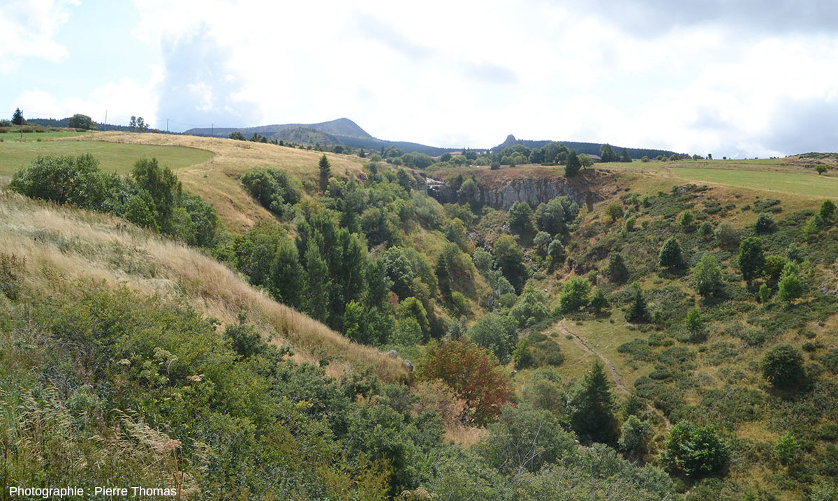 ![]() Source - © 2025 — Pierre Thomas Le site des photos 10 à 12 est en dehors du champ de l’image, quelques dizaines de mètres plus vers la droite et vers le bas de la vue. Cette vallée montre l'importance de l'érosion en 170 000 ans. Au fond, le Mont Mézenc. |