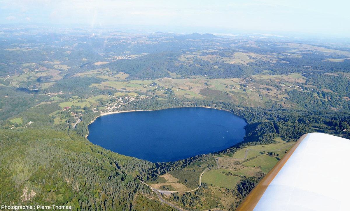 ![]() Source - © 2022 — Village de Borée / Facebook Le lac n'a pas la forme circulaire classique car un dôme phonolitique miocène a probablement “orienté” les explosions ce qui donne à la dépression sa forme non symétrique, à moins que ce ne soient des éboulis issus du dôme qui aient partiellement rempli le lac. | |