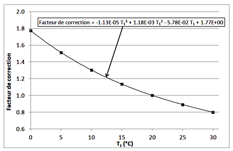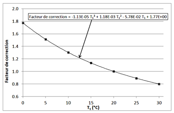 Le graphique suivant montre le facteur correctif τ nécessaire pour avoir la perméabilité à une autre température : k20°C = τ . kT°C.