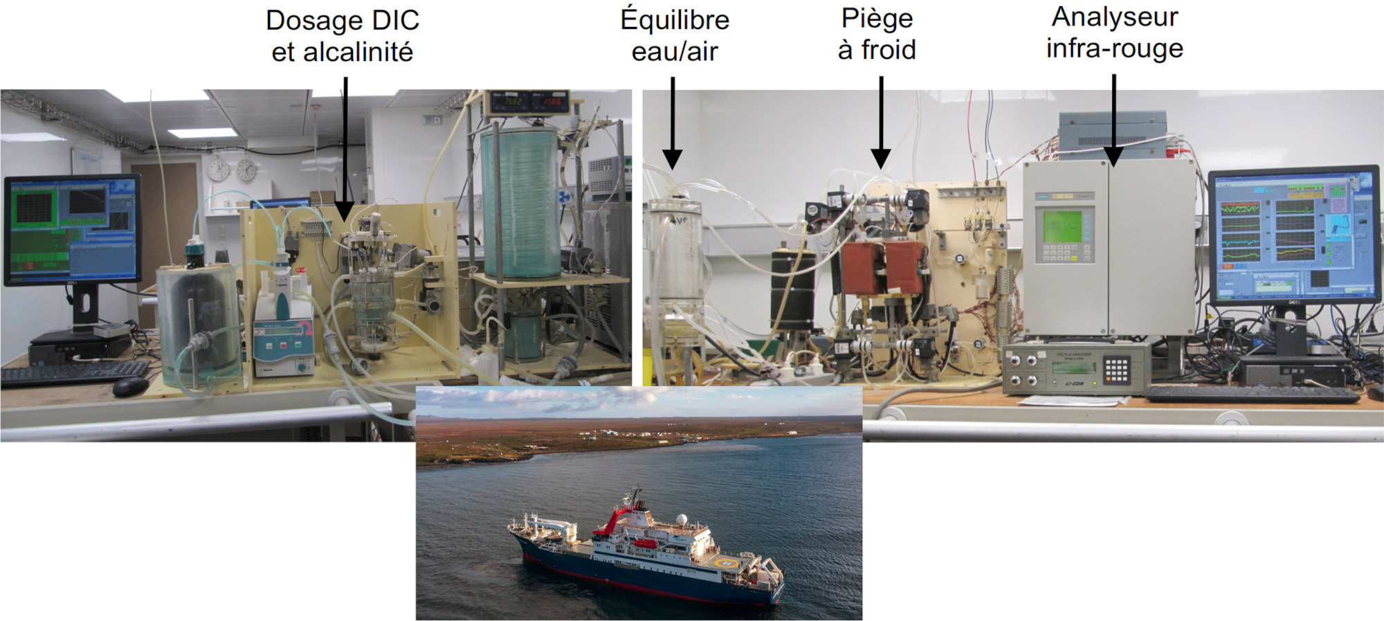 Depuis 1998, le programme OISO sillonne l'océan Indien et mesure la pression partielle de CO2 océanique et atmosphérique ainsi que le carbone inorganique dissout (DIC) et l'alcalinité. L'eau de mer est pompée sous la coque du navire et arrive dans un débulleur qui alimente tous les instruments. Le dosage du DIC et de l'alcalinité est réalisé par titration potentiométrique. Pour la mesure du CO2, l'eau de mer est équilibrée avec de l'air qui est ensuite séché dans un piège à froid. Le CO2 contenu dans l'air sec équilibré avec l'eau est ensuite mesuré par absorption infrarouge dans un analyseur en continu. L'instrument bascule régulièrement entre la mesure de la pCO2 océanique et atmosphérique. Les instruments sont autonomes et calibrés avec des standards toutes les 6 heures. Les données obtenues en temps réel sont vérifiées et validées par les chercheurs embarqués qui s'assurent du fonctionnement optimal des instruments tout au long de la campagne en mer.